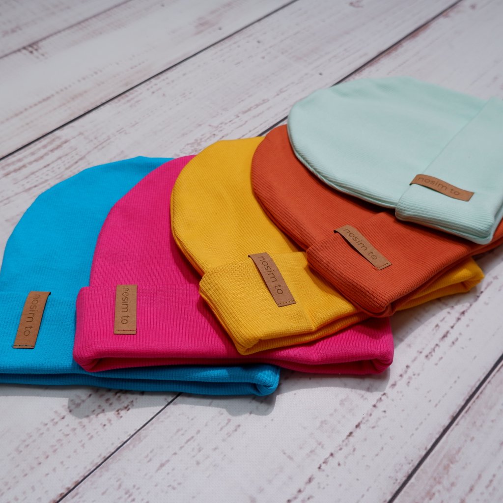 Úžasná dětská čepička z žebrovaného úpletu. Čepička je dvouvrstvá, krásně tak udrží hlavičku v teple a přes ohrnutý lem do oušek určitě nenafouká.